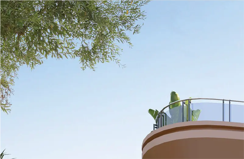 Wide balconies with scenic views